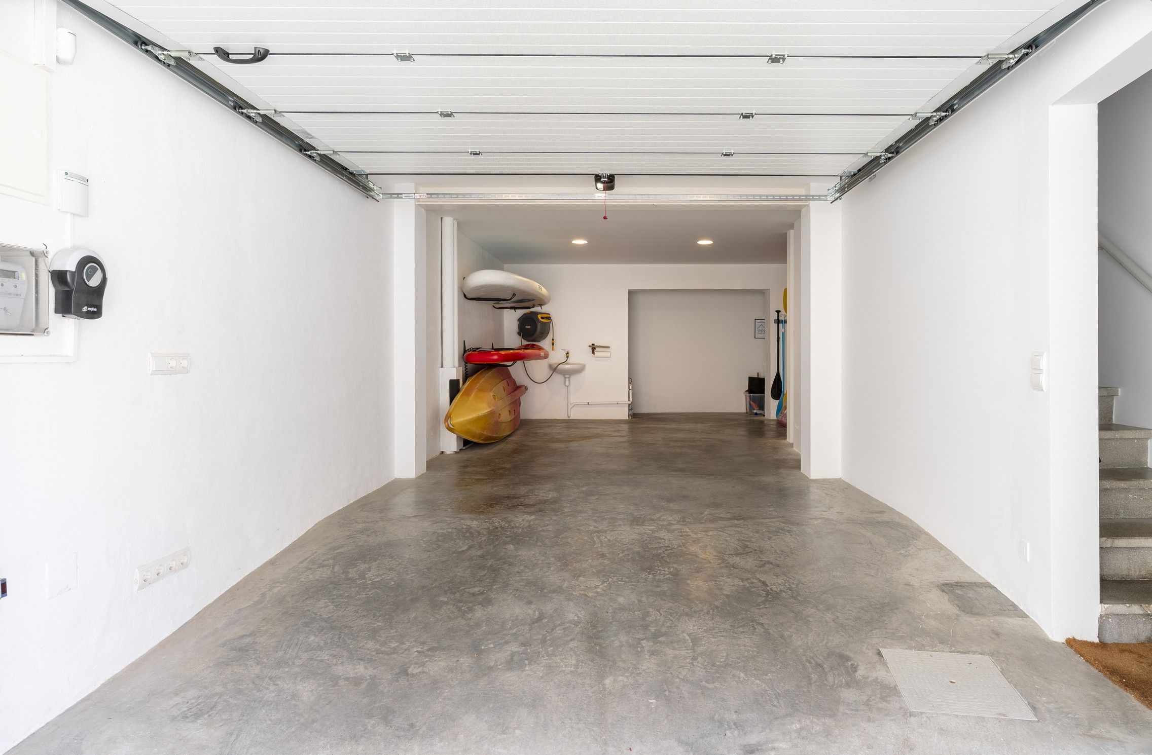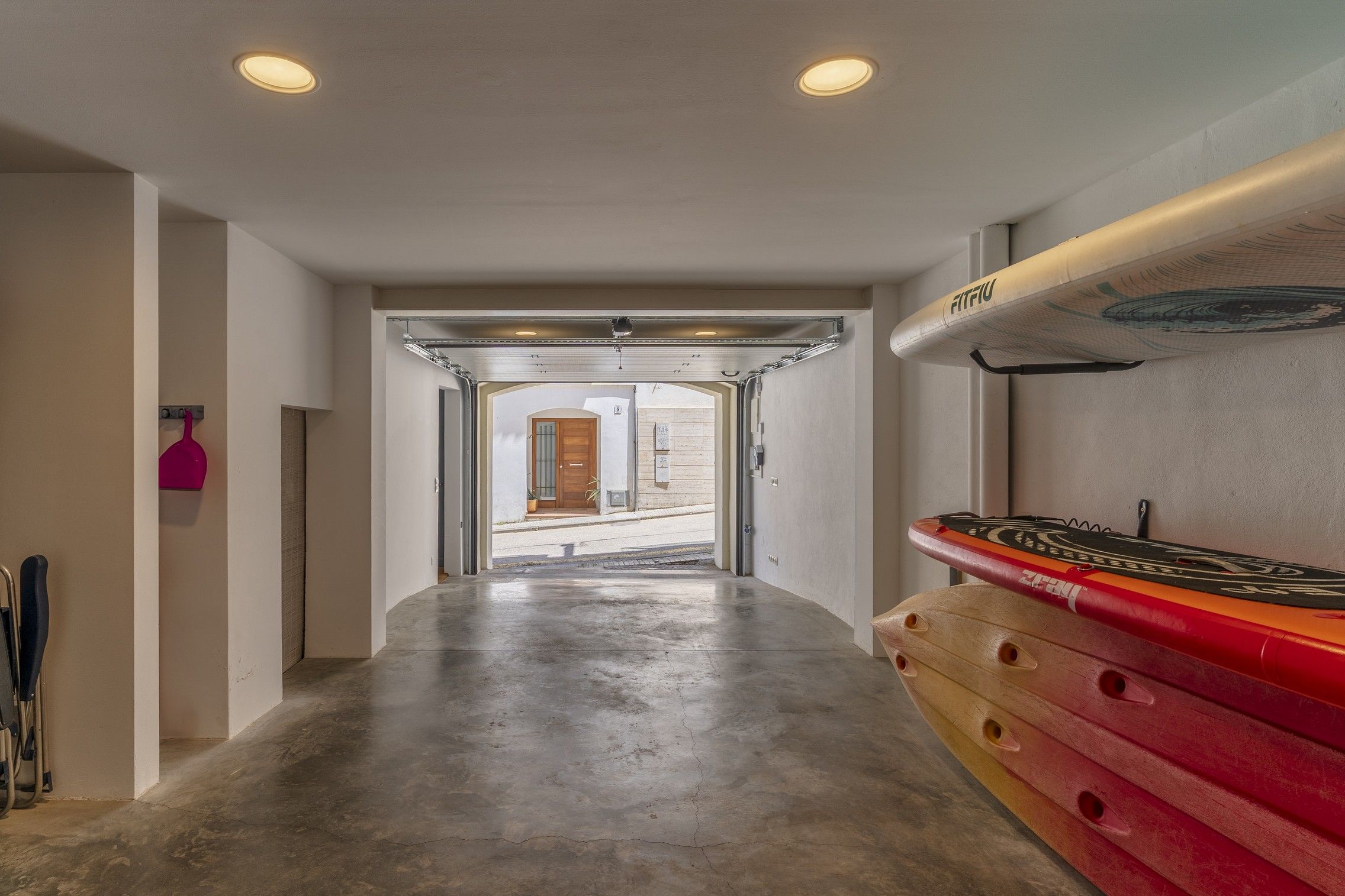 En el garatge de la casa hi pot aparcar 1 cotxe gran o 2 de petits. També trobareu disponibles 2 taules de padel surf i un kayak doble, i alguns utensilis de platja com cadires de platja, para-sols, etc...
