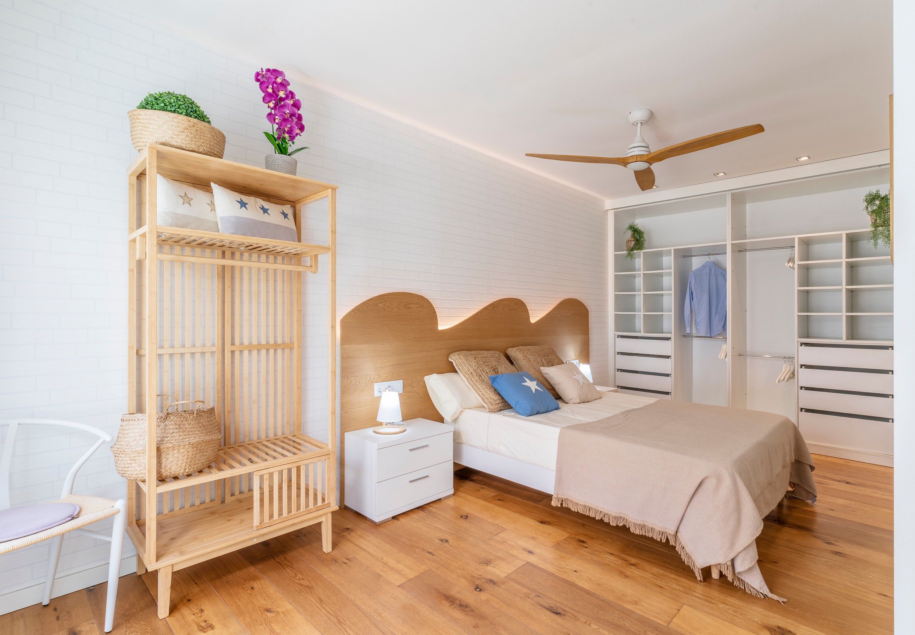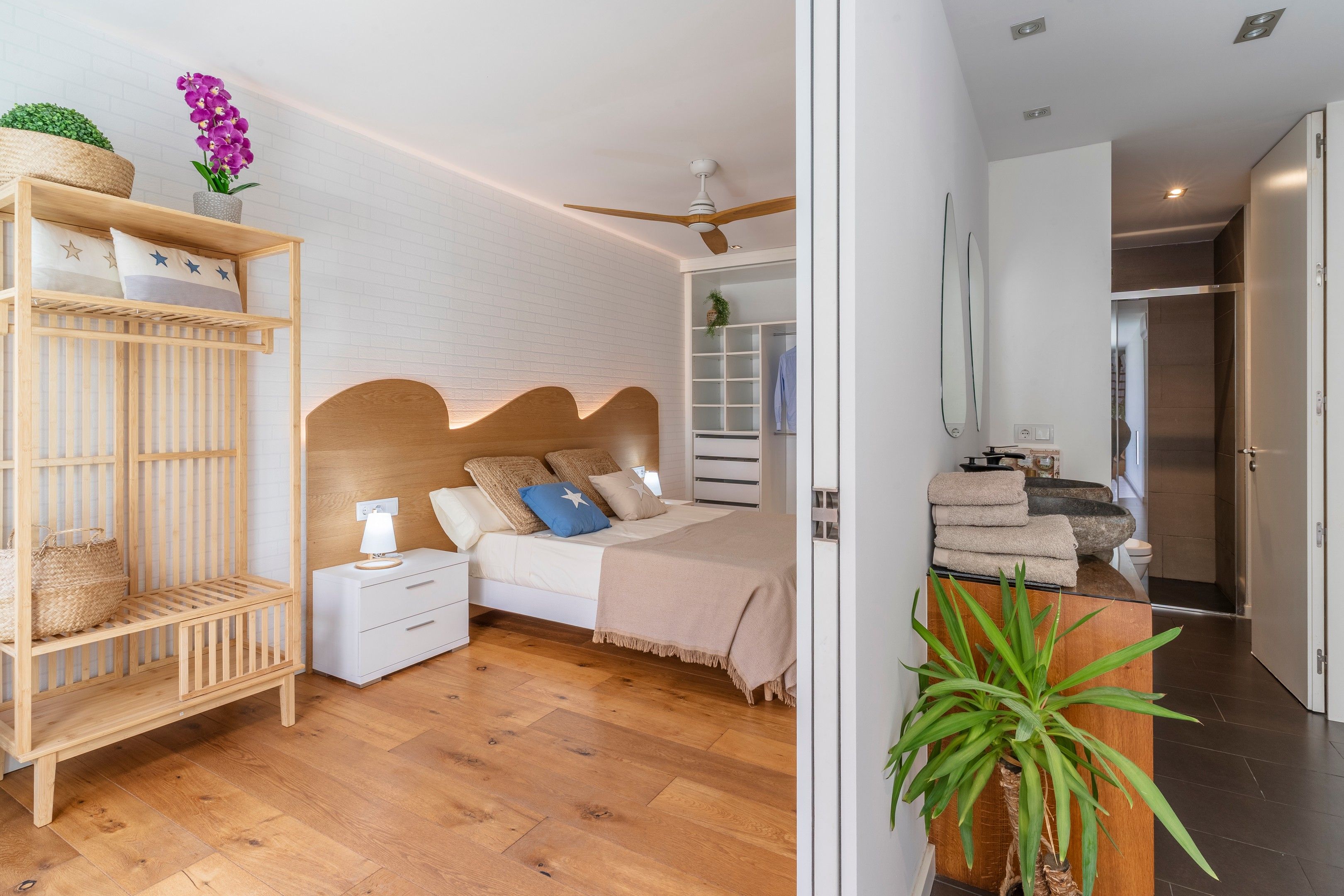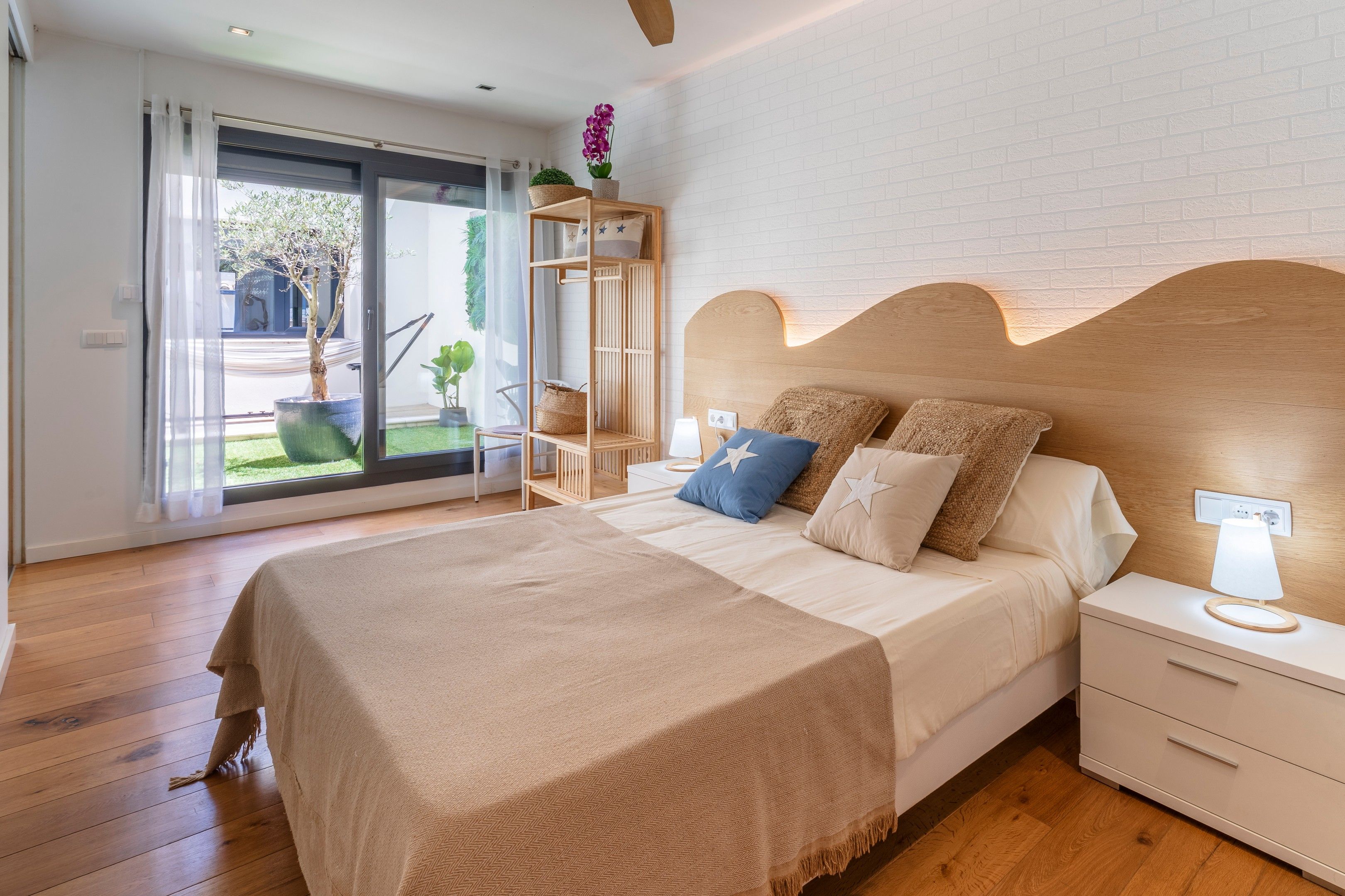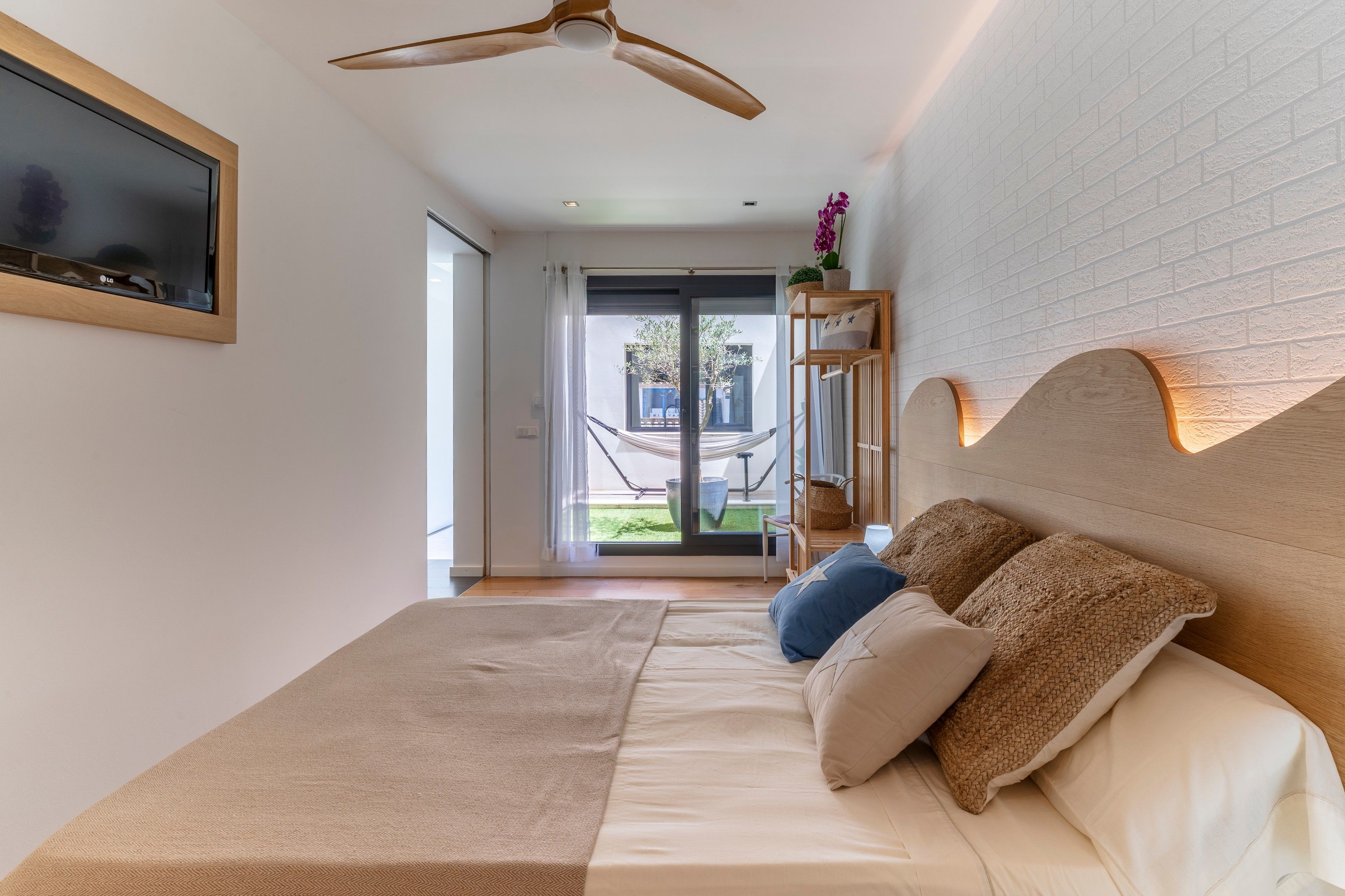 Aquí trobareu un llit doble amb armari obert, TV i accés a un pati interior amb hamaca per poder disfrutar de les nits a la nostra casa a la fresca. Com la resta d’habitacions disposa de coixins i matalassos viscoelàstics amb vàries zones de confort, necessaris per a un descans còmode.