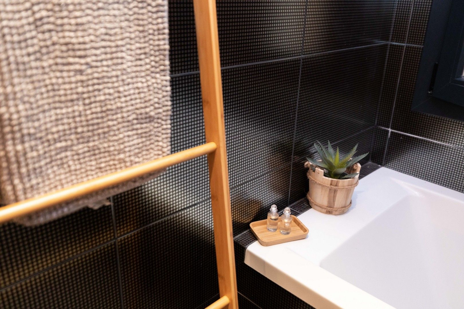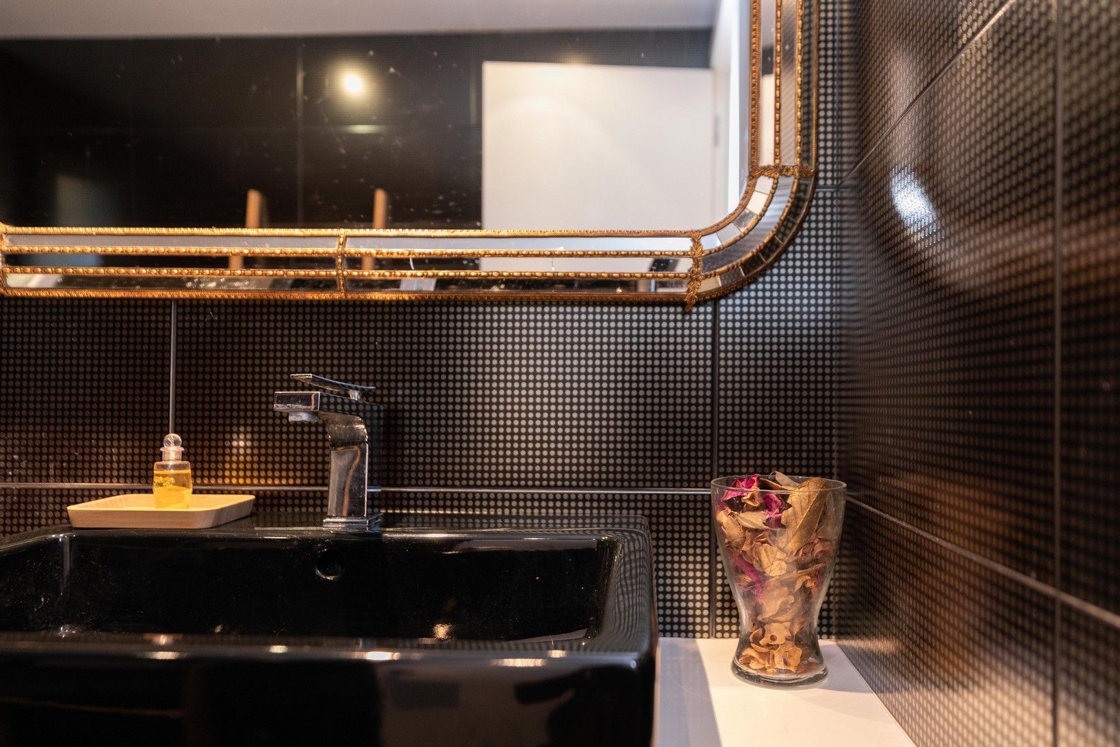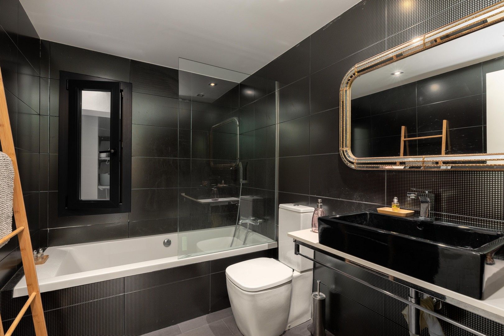 Bany de disseny amb una perfecta combinació entre modern i clàssic. Disposa de banyera.