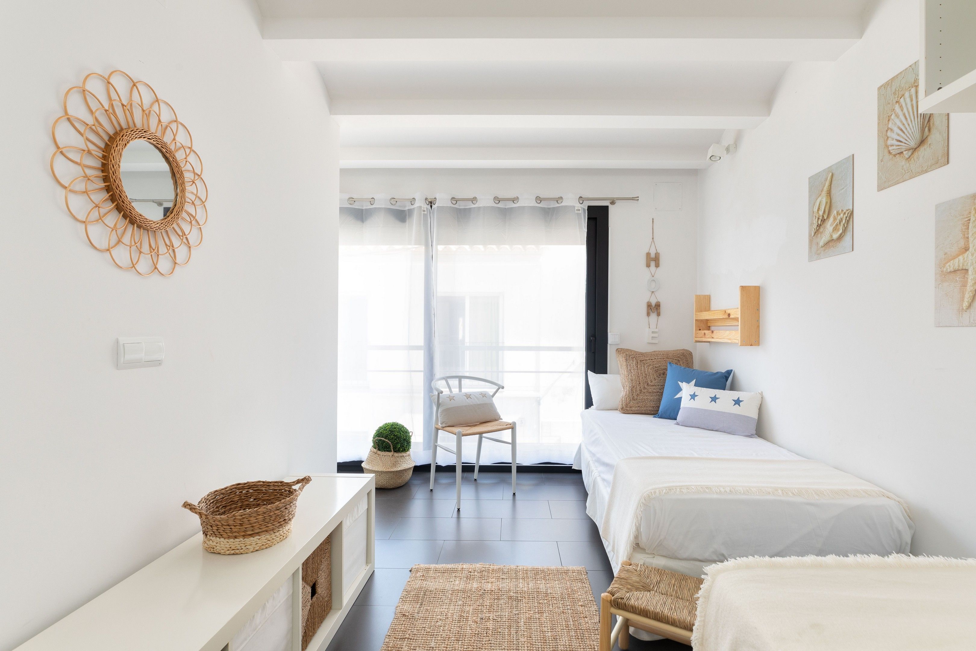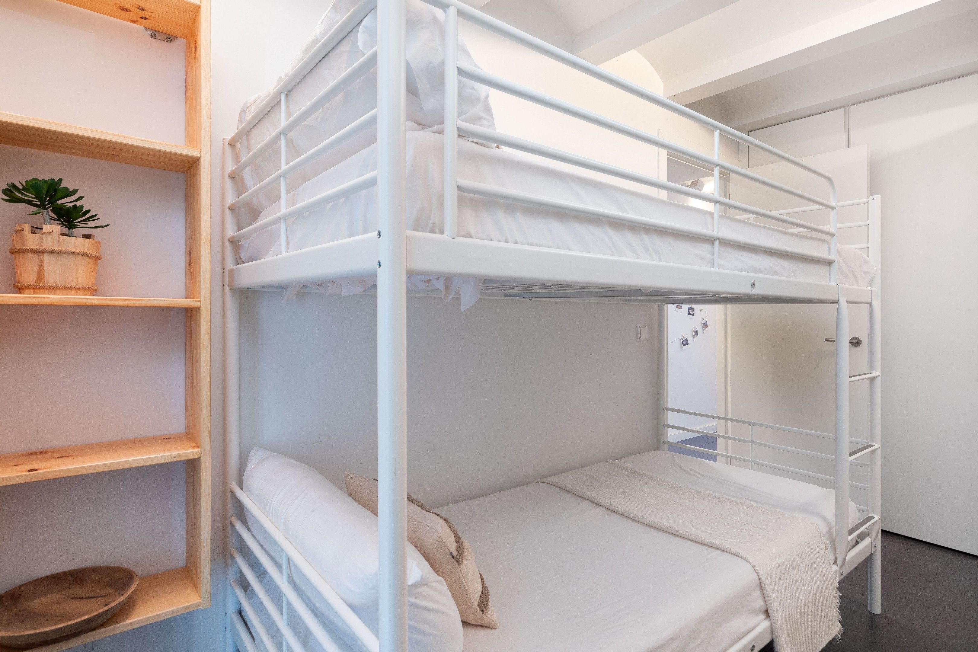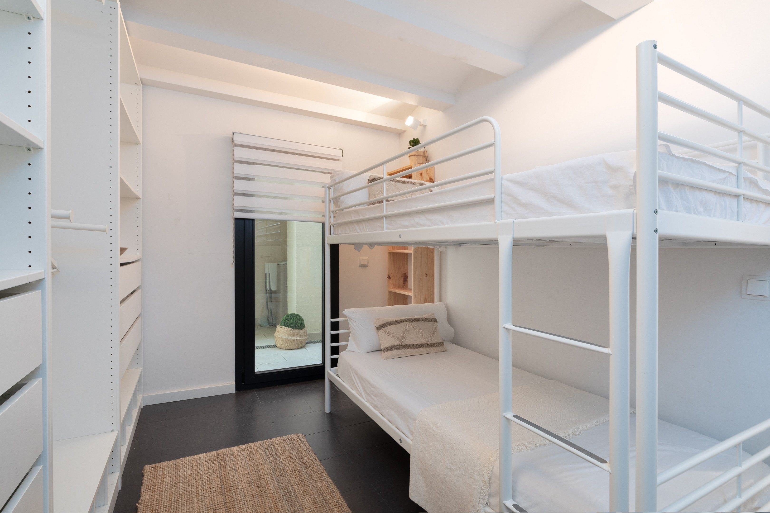 En aquesta habitació trobem una llitera amb un armari tipus vestidor obert. Aquesta habitació dóna accés a un petit pati interior en el qual trobareu la rentadora i zona per estendre la roba.