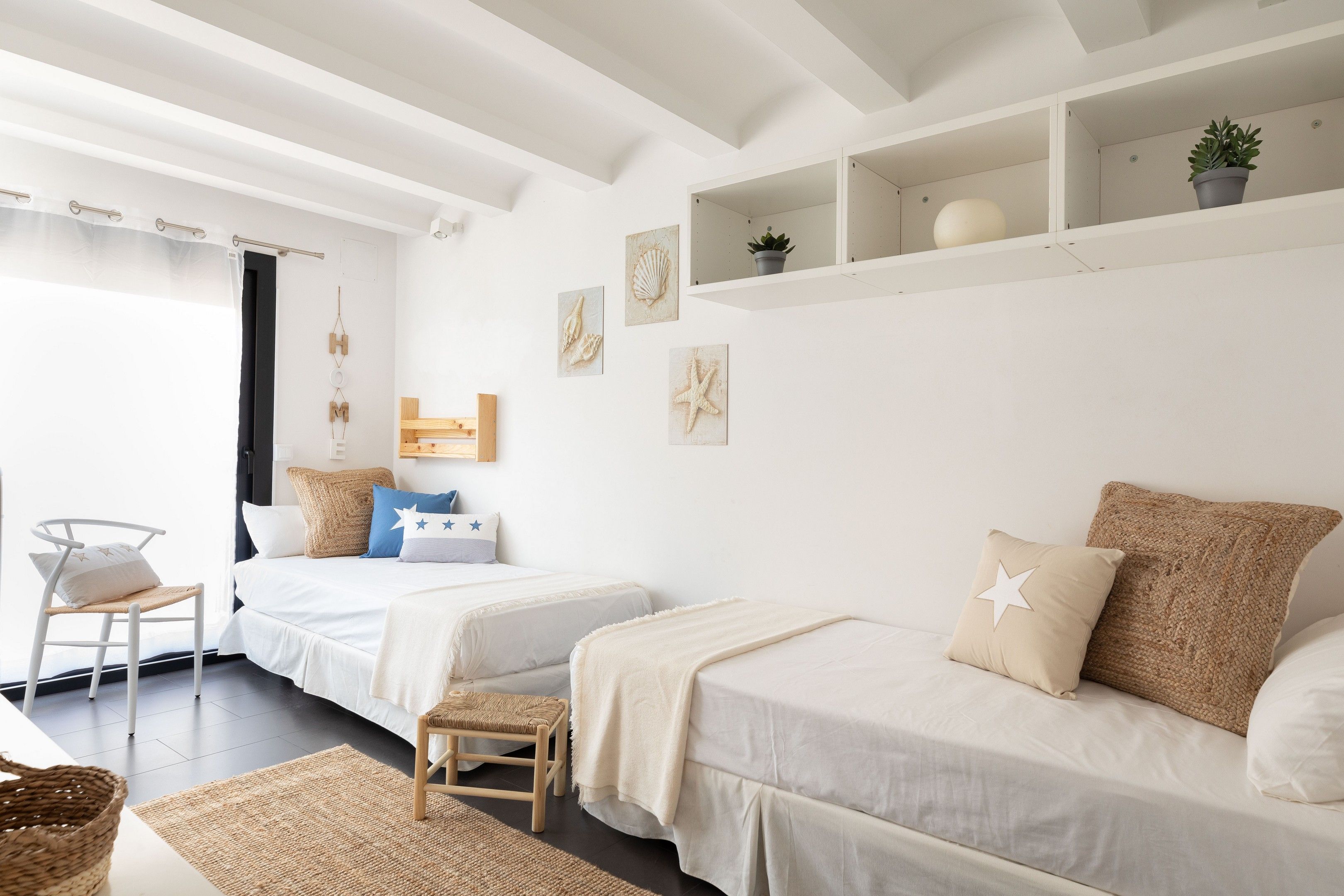 En aquesta cambra tenim 2 llits individuals i 1 armari. Disposa d’accés a balcó a la part davantera de la casa.